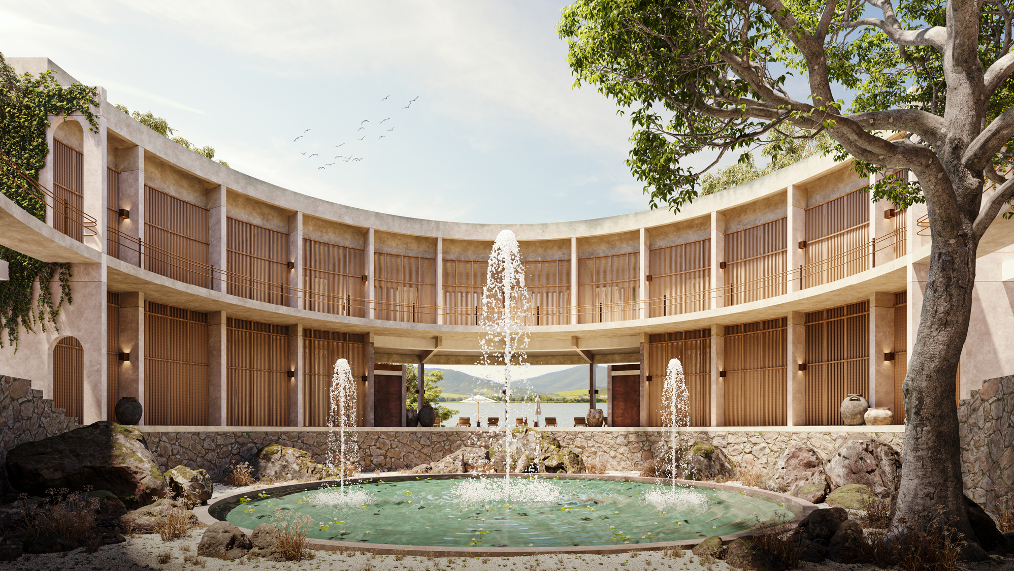 Tenemos un centro de meditación y oración en la parte superior del relieve del terreno con vistas privilegiadas con orientación hacia el lago de Chapala generando un ambiente de relajación y de tranquilidad único.
